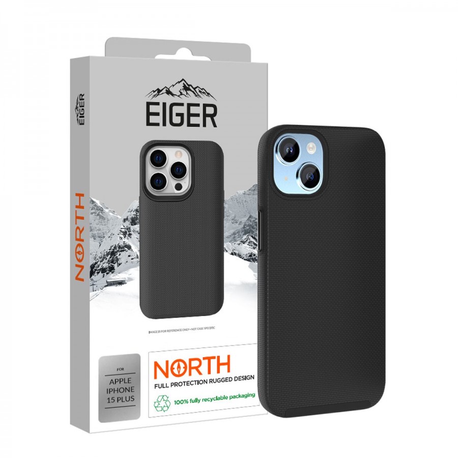 Coque Eiger North Case iPhone 15 Plus robuste et antichoc. Protection extrême 4m avec double couche TPU + polycarbonate, surface texturée et garantie 2 ans.
